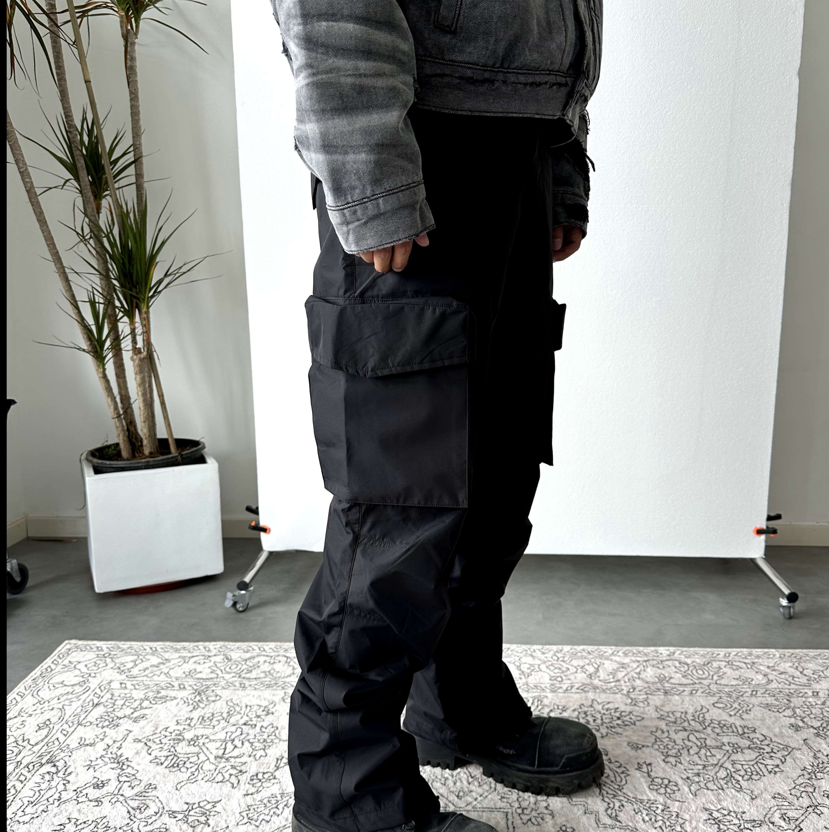 黒のカーゴパンツは、機能的なポケットデザインと耐久性のある素材で日常の実用性を追求。 サイドに配置された大きなポケットが特徴的で、収納力抜群。 アウトドアやアクティブな場面でも動きやすさを確保し、タフな環境下でも快適な着用感を実現した革新的なデザインのカーゴパンツです。